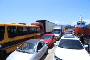17:19 DER/PR altera restrições para veículos pesados no ferry boat de Guaratuba O Departamento de Estradas de Rodagem do Paraná (DER/PR) informa que, em virtude dos bloqueios nas rodovias de acesso ao Litoral, e visando garantir o fluxo na travessia da Baía de Guaratuba, está alterando o horário de restrição para veículos com mais de três eixos e/ou superiores a 14 metros.