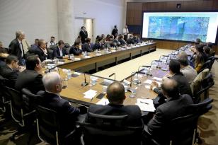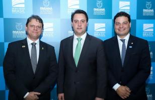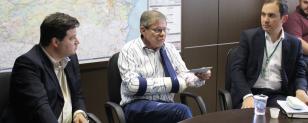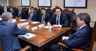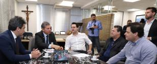 O governador Carlos Massa Ratinho Junior, o secretário de Infraestrutura e Logística Sandro Alex e o diretor-geral brasileiro da Itaipu Binacional, Joaquim Silva e Luna, se reuniram nesta quarta-feira (12), em Foz do Iguaçu, para acertar detalhes do contrato de gestão da segunda ponte ligando Bra