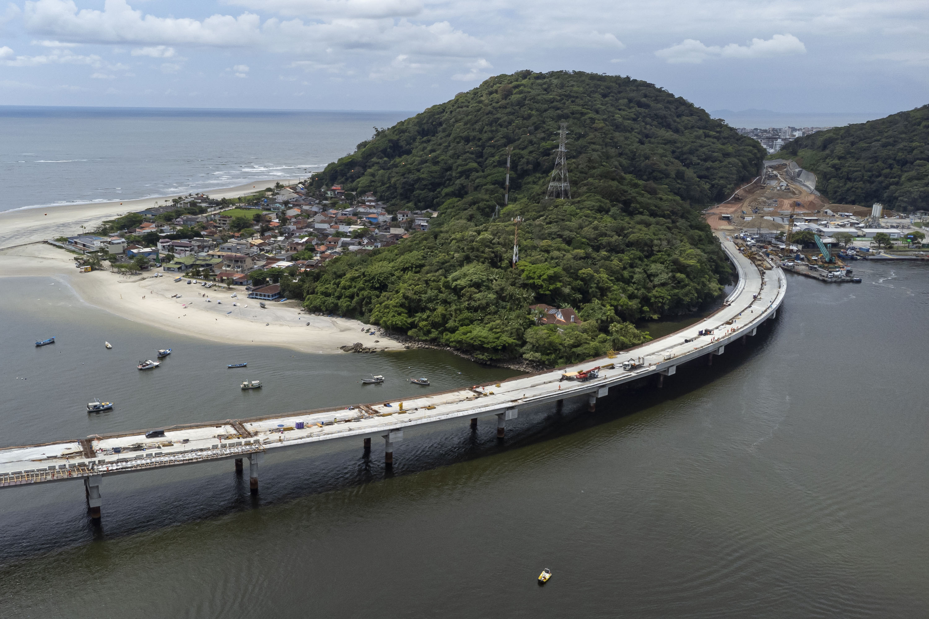 Com 1.240 metros de extensão, a ponte sobre a baía de Guaratuba é uma obra de mais de R$ 400 milhões que vai eliminar a dependência da travessia por ferry-boat, trazendo mais agilidade, segurança e integração ao litoral paranaense.