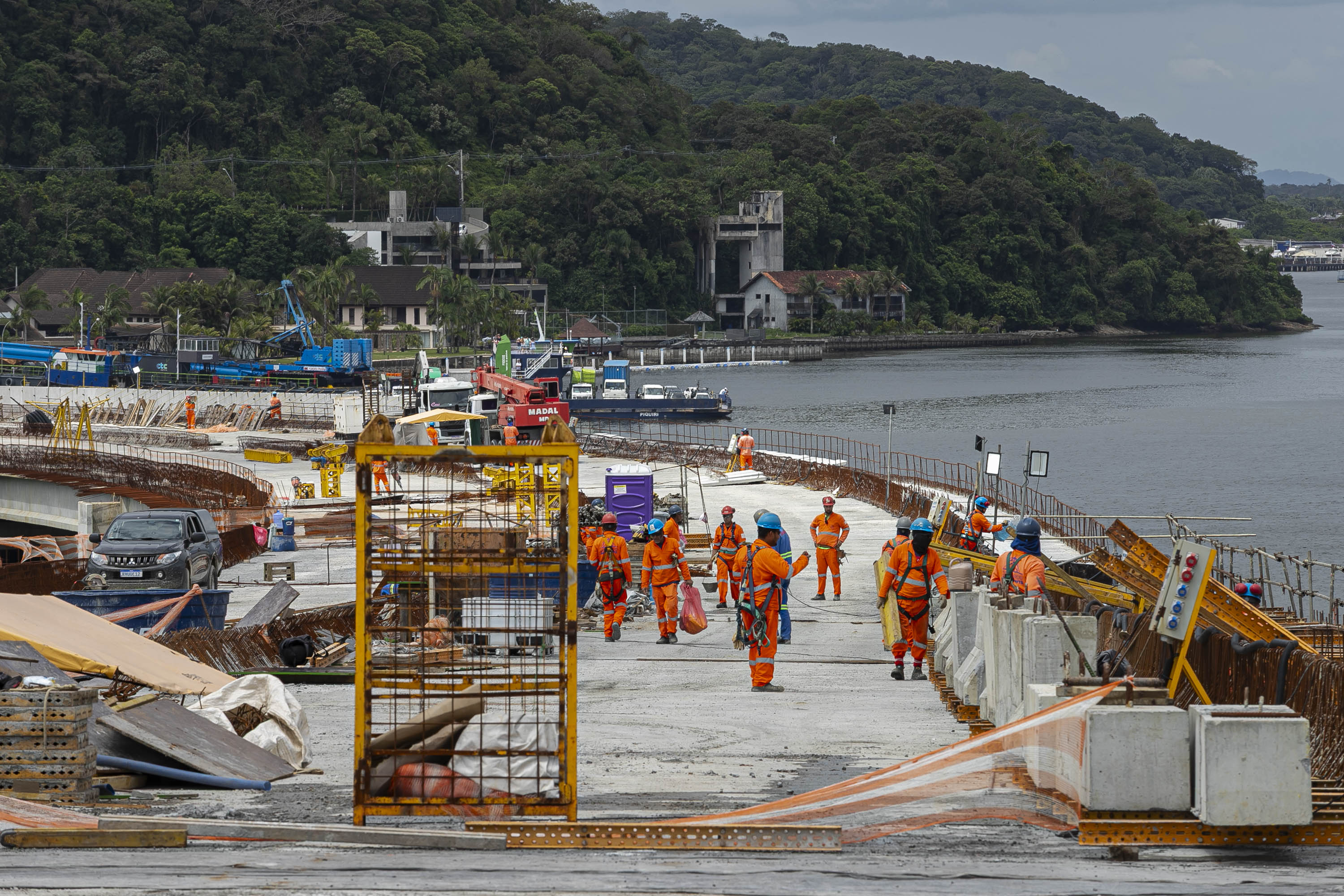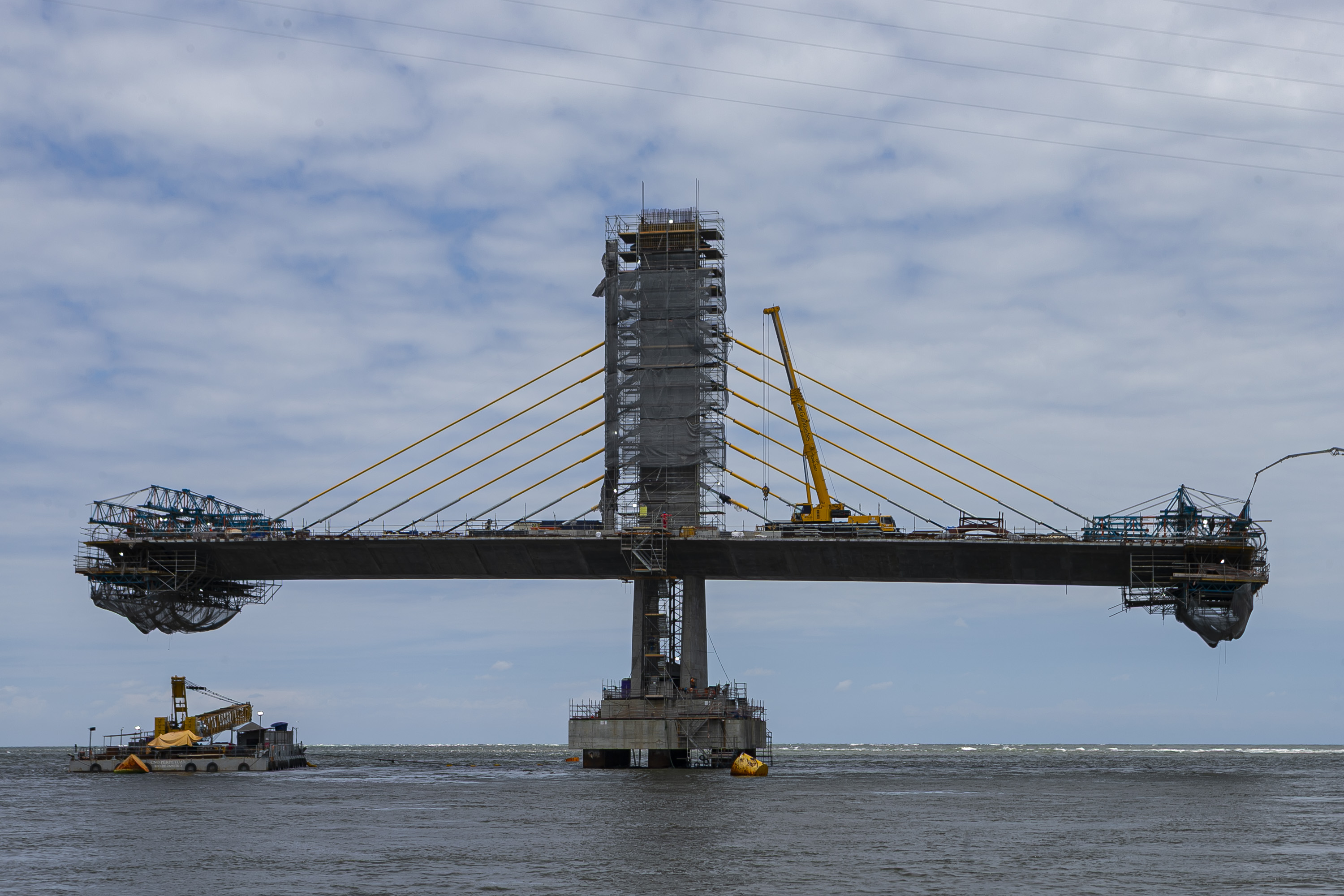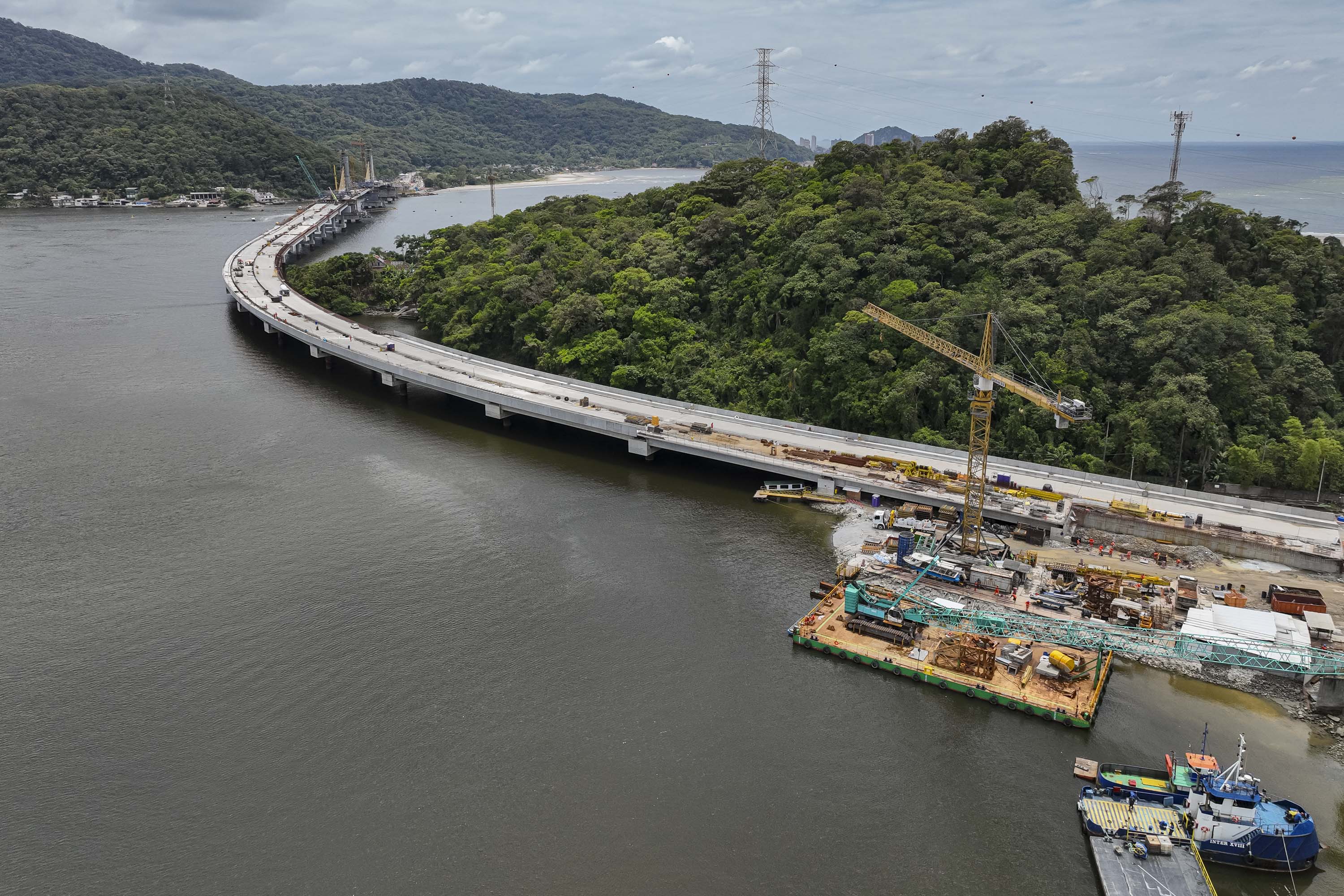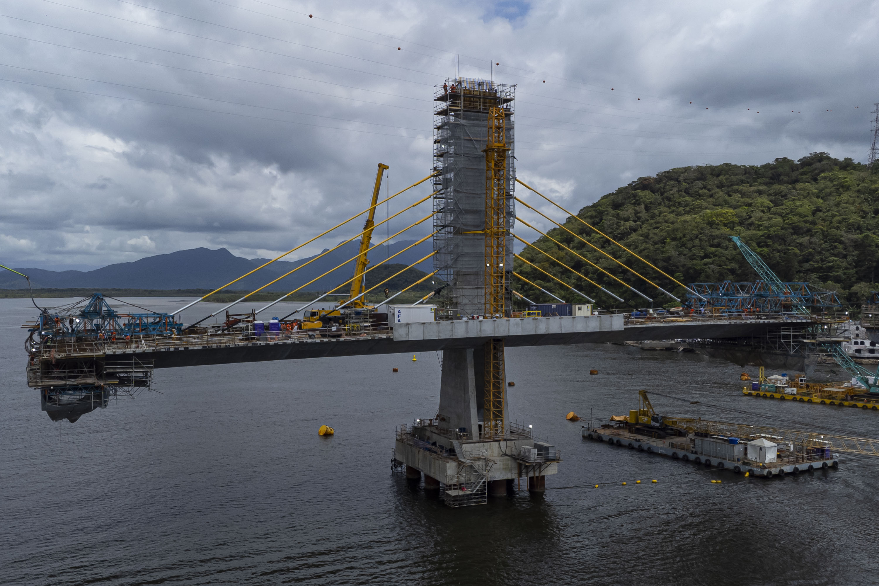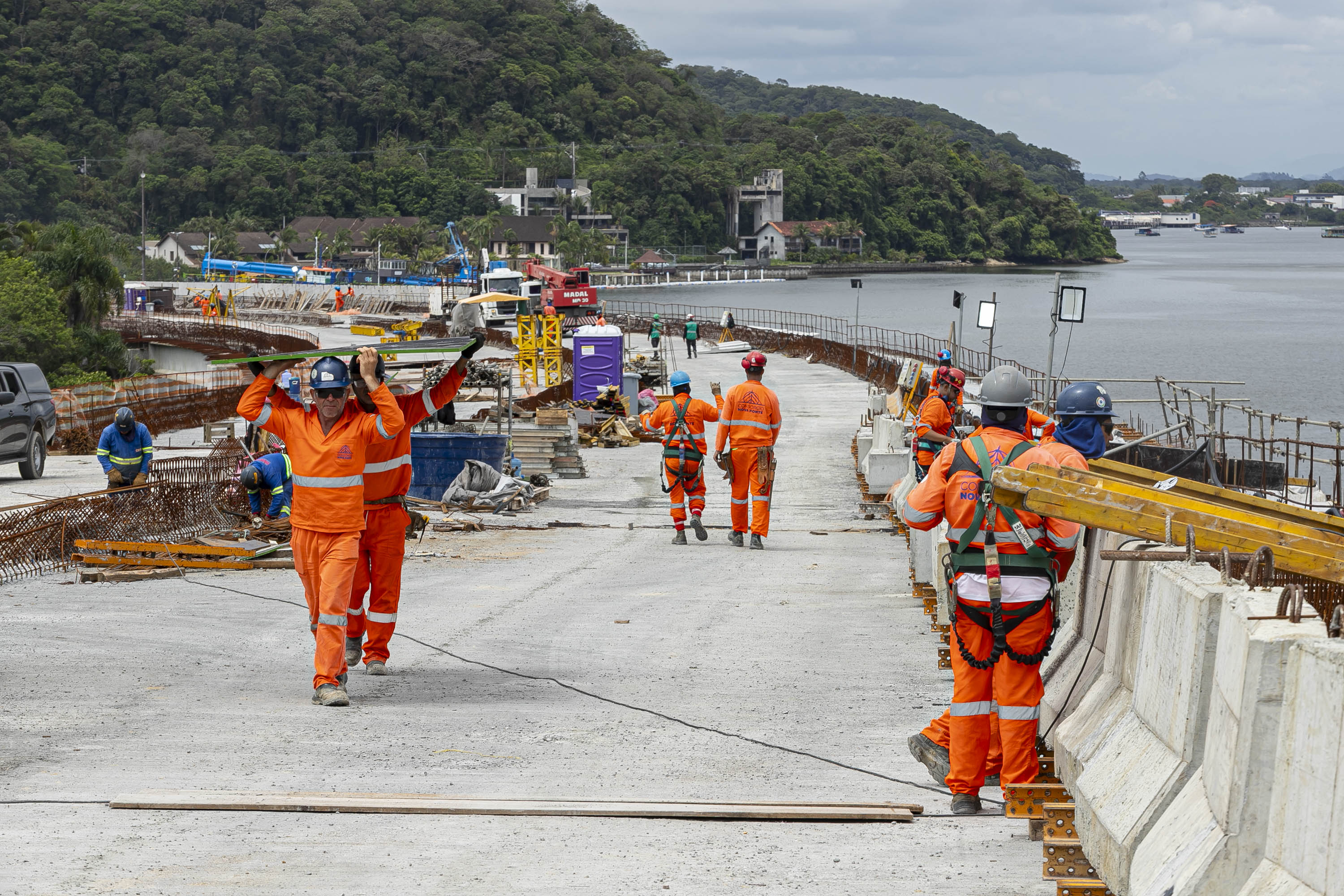 A obra da Ponte de Guaratuba atingiu 85% de execução no mês de novembro e segue avançando em todas as frentes de trabalho, com previsão de ser entregue em abril do ano que vem.