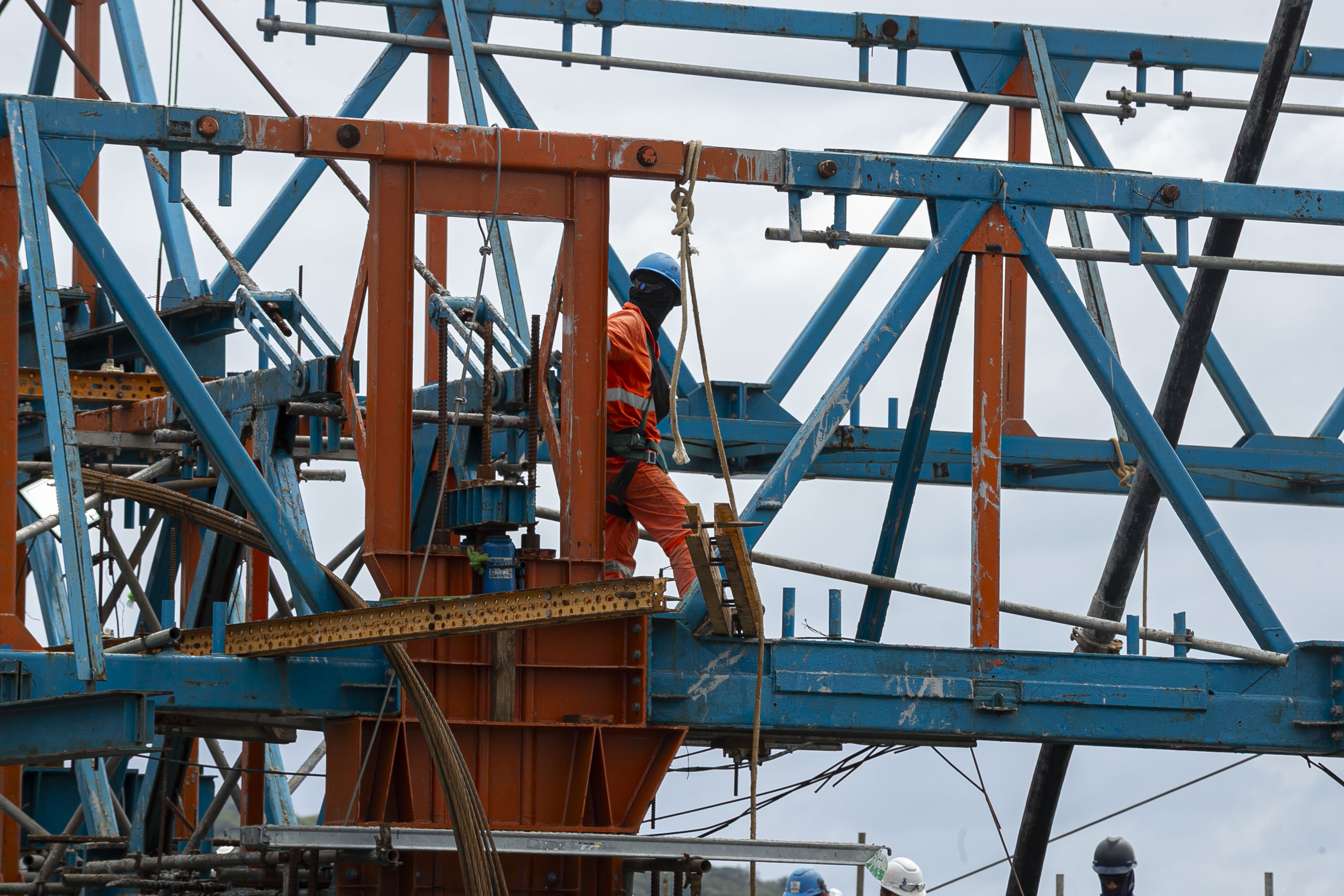 TRECHO ESTAIADO – O trecho estaiado, considerado um dos marcos visuais da obra, também teve progressos expressivos. Com as estacas e os pilares das torres principais já finalizados, as equipes se dedicaram à execução das aduelas, segmentos de concreto moldados in loco pelo método dos balanços sucessivos. Foram concluídos nove pares de aduelas no apoio 04, totalizando 114 metros, e nove pares no apoio 05, com mais 114 metros. No total, o trecho estaiado já conta com 228 metros executados dos 320 previstos. Também foram instalados sete pares de estais em cada uma das torres.