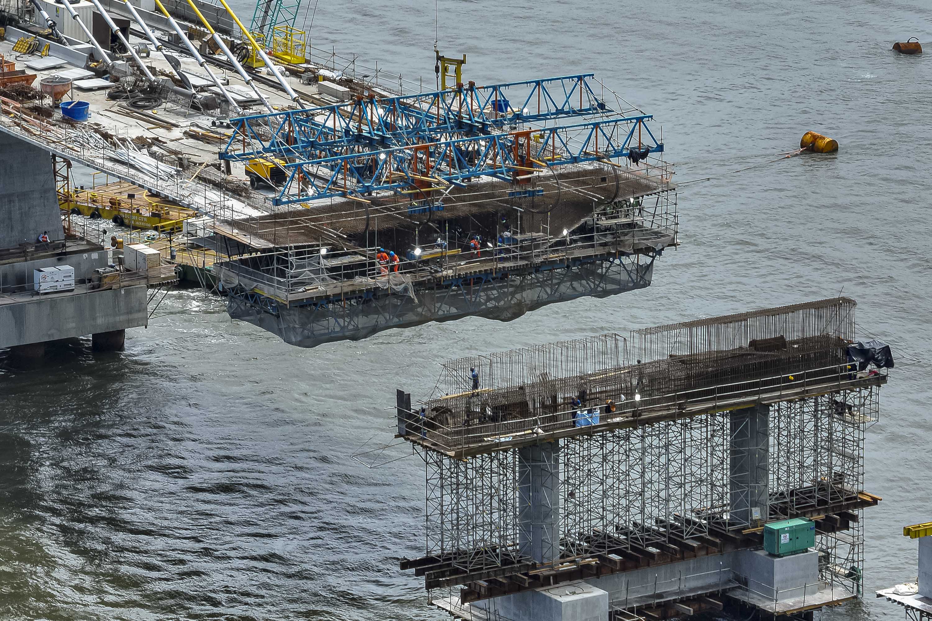Na superestrutura, a produção e o lançamento das vigas seguem em ritmo acelerado. Já foram fabricadas 153 vigas longarinas, das quais 128 foram lançadas sobre as travessas. As equipes também finalizaram 16 vão do tabuleiro no trecho pré-moldado, que possui um total de 20 vãos. A extensão finalizada nesse trecho já soma 680,6 metros. Quando concluída, a ponte terá 23 vãos ao todo, incluindo os três do trecho estaiado.