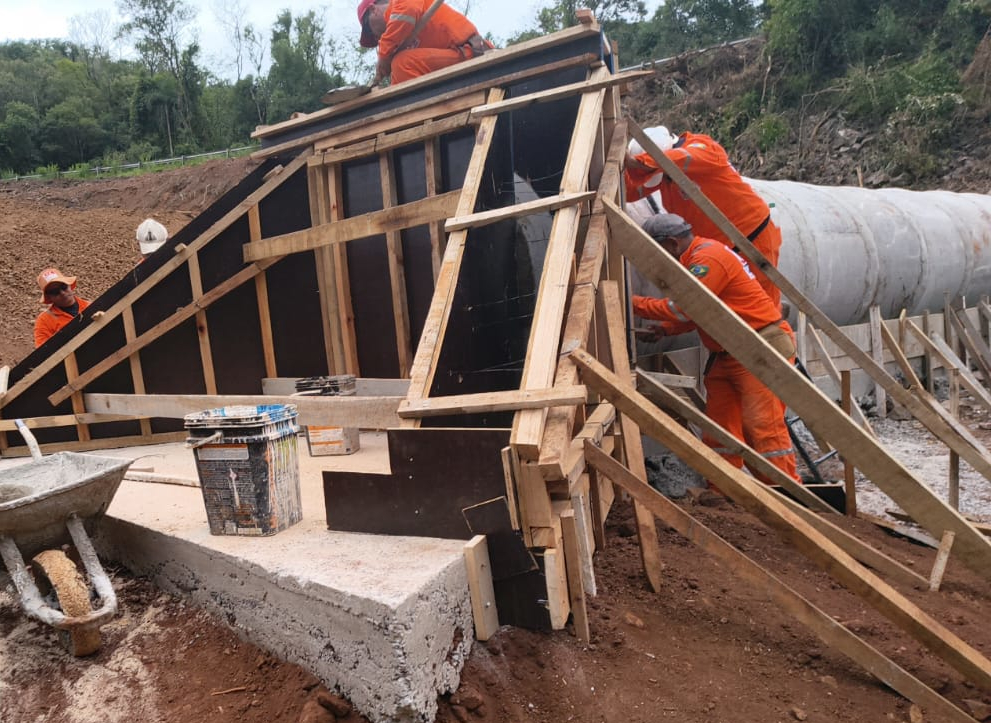 E na PRC-487 estão em andamento os serviços iniciais de terraplenagem e ampliação do sistema de drenagem de águas.