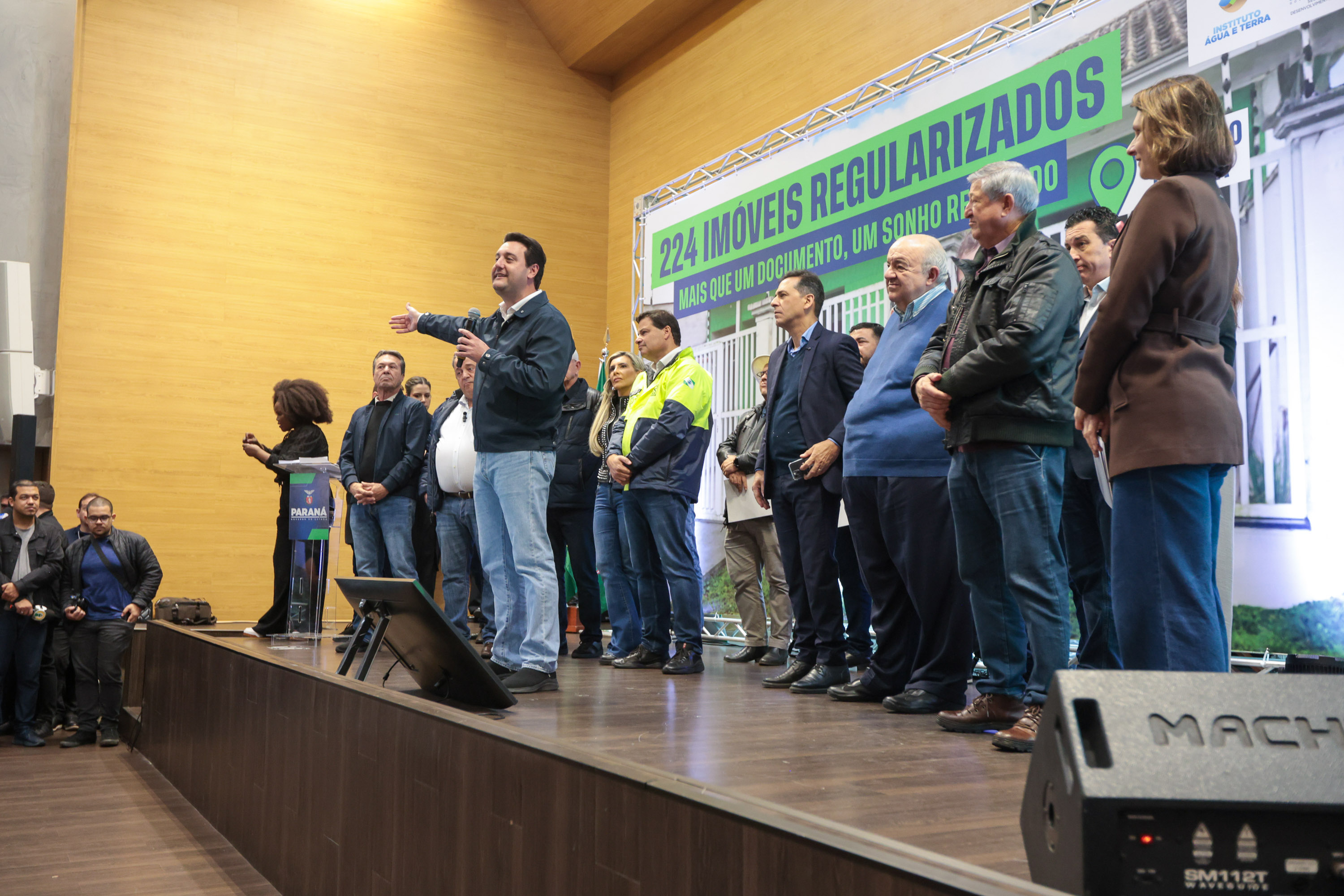 A assinatura ocorreu durante a solenidade de entrega de 212 títulos de propriedade rural no município, que contou com investimento de R$ 455 mil do governo estadual. Na ocasião, o governador também destinou R$ 26 milhões em máquinas de linha amarela para as sete cidades que integram a Associação dos Municípios do Litoral do Paraná (Amlipa).