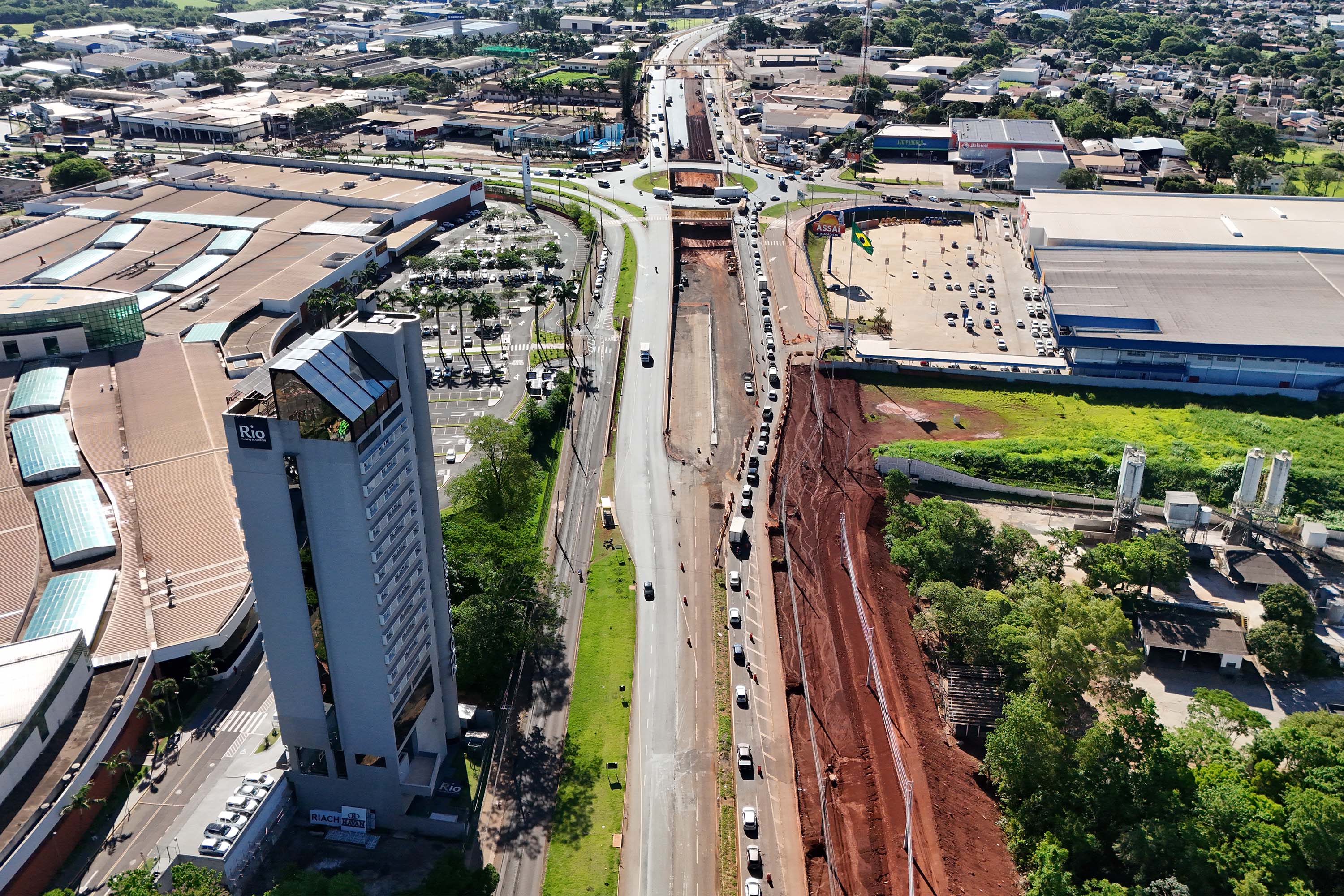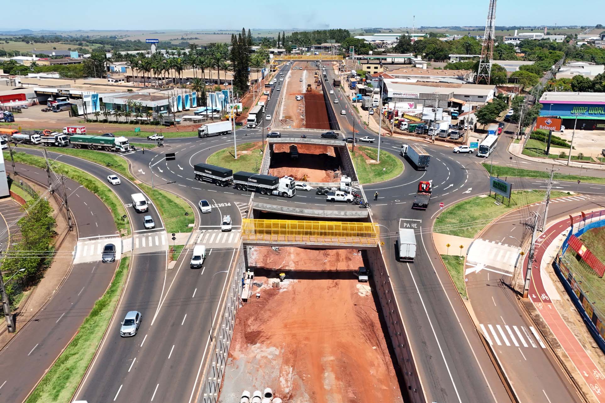 Serviços estão concentrados na pavimentação da nova pista rebaixada da BR-376, que passa embaixo da rotatória ligando a PR-317 e a Av. João Pereira. Investimento é de R$ 49 milhões.