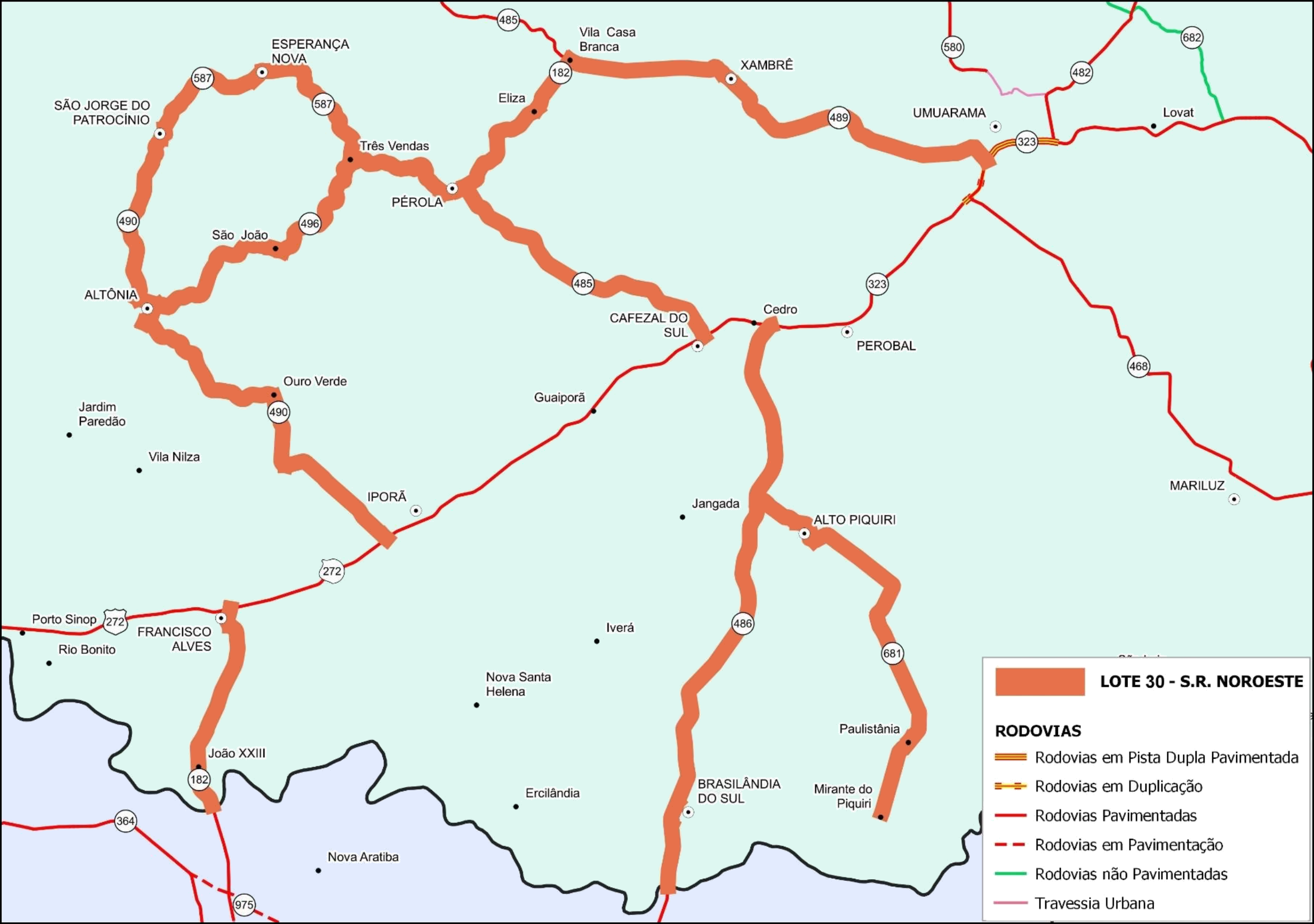 Estão contempladas as rodovias PR-182, PR-485, PR-486, PR-489, PR-490, PR-496, PR-587 e PR-681, cruzando os municípios de Alto Piquiri, Altônia, Brasilândia do Sul, Cafezal do Sul, Esperança Nova, Francisco Alves, Iporã, Perobal, Pérola, São Jorge do Patrocínio, Umuarama e Xambrê.