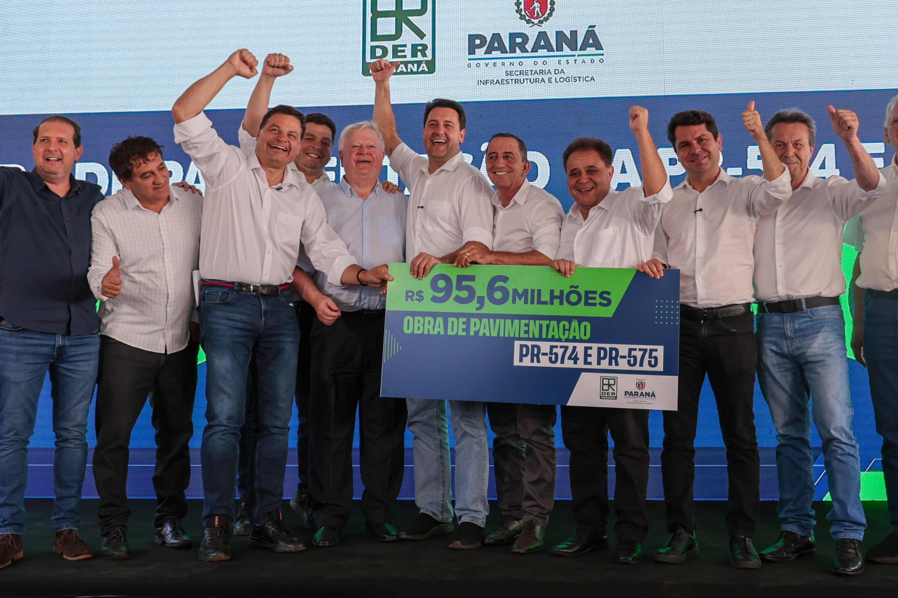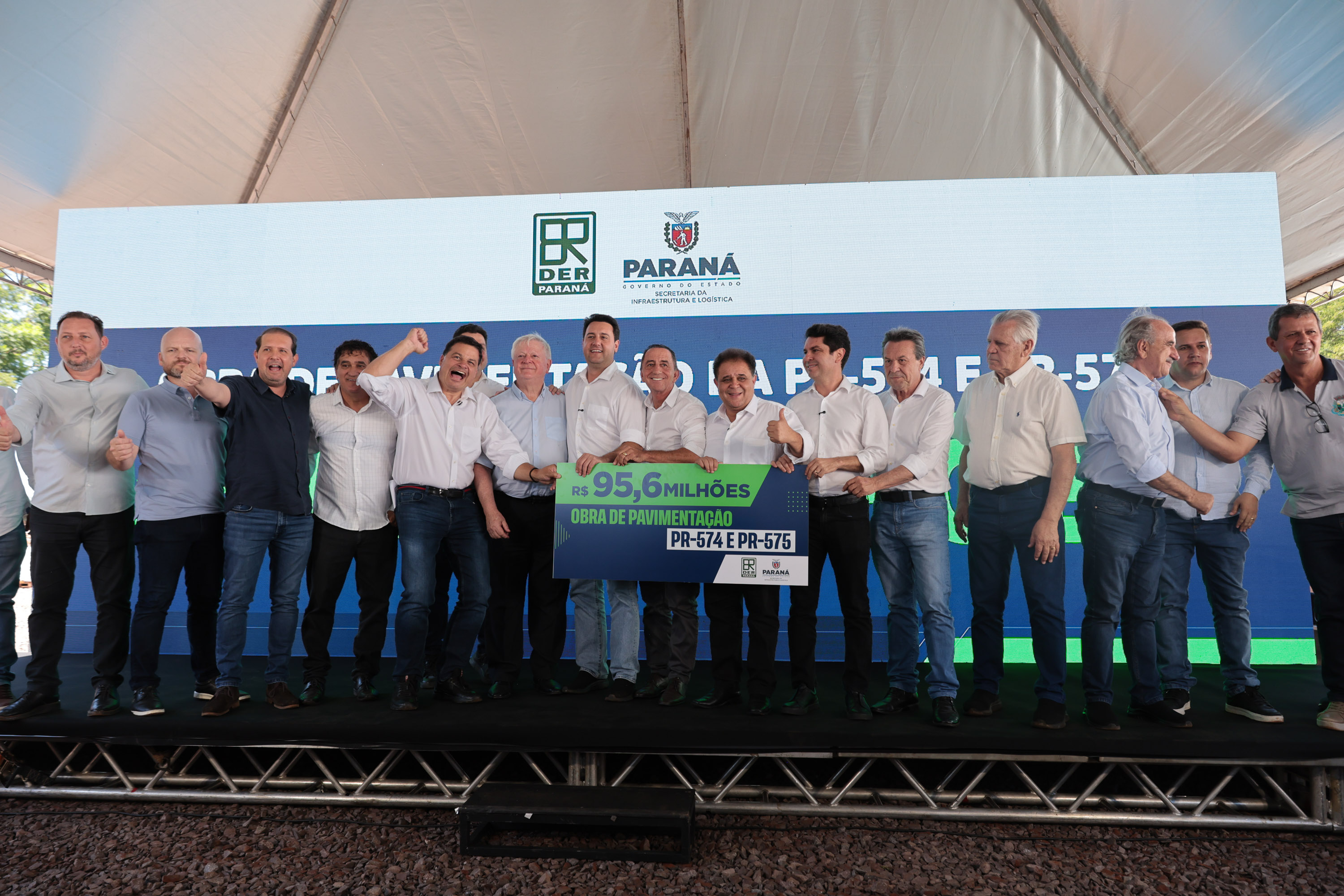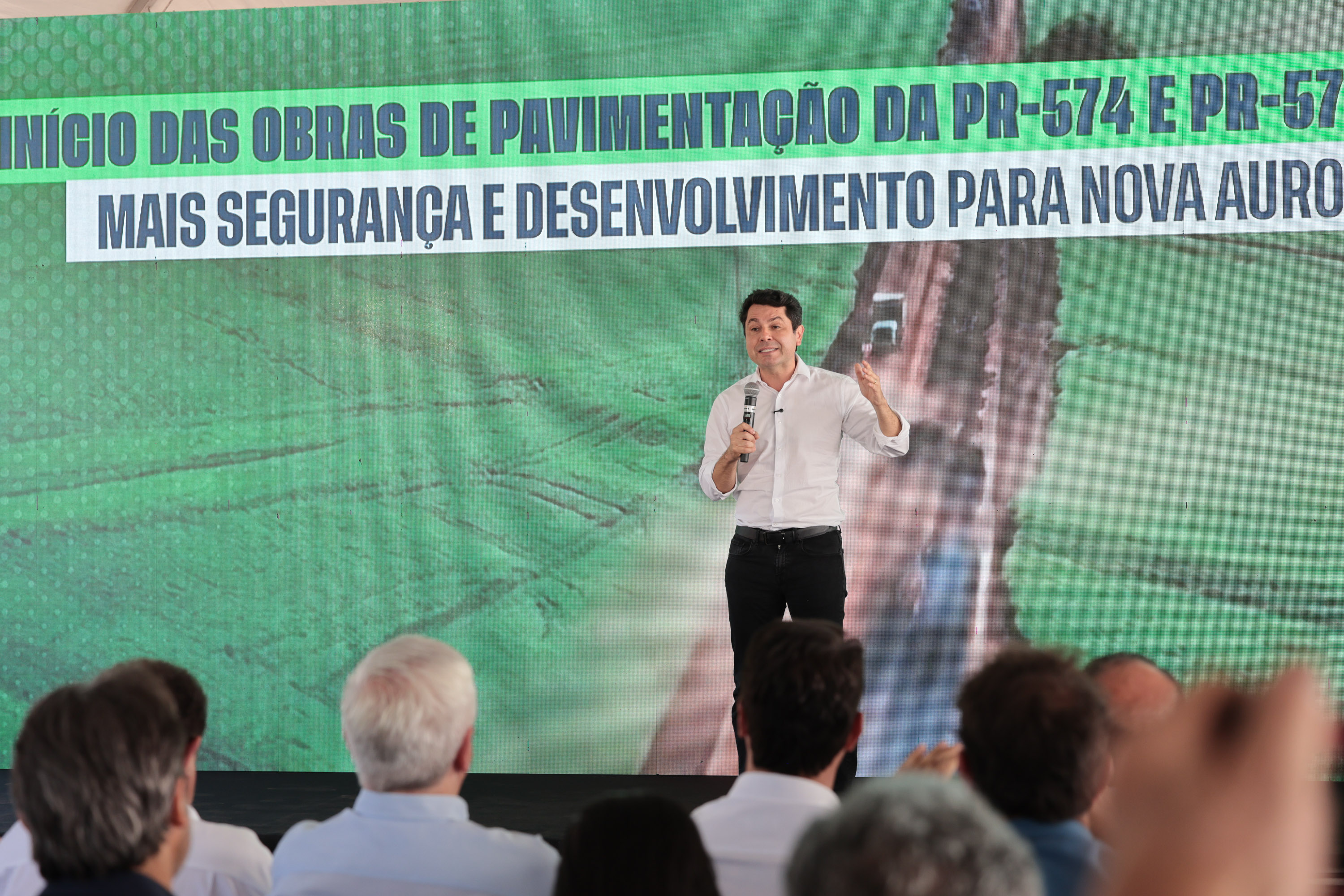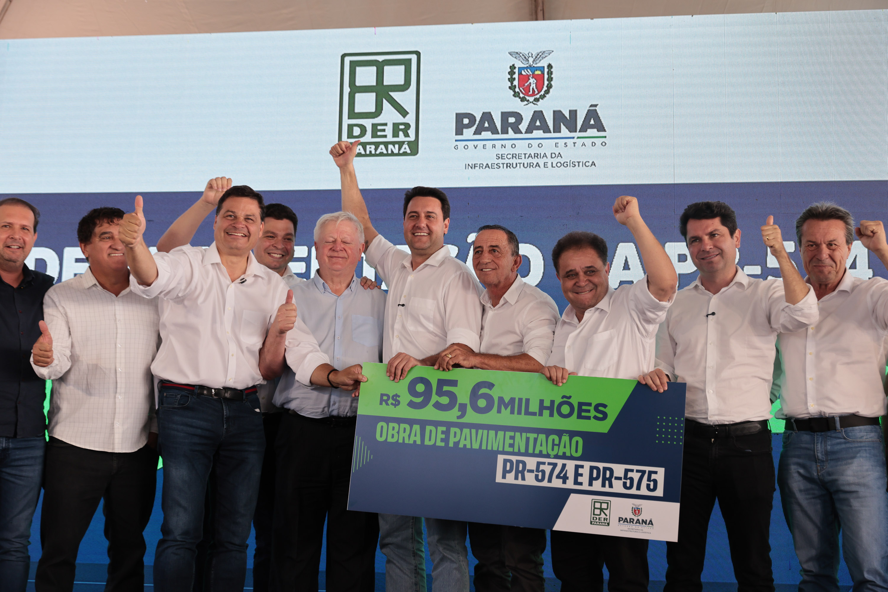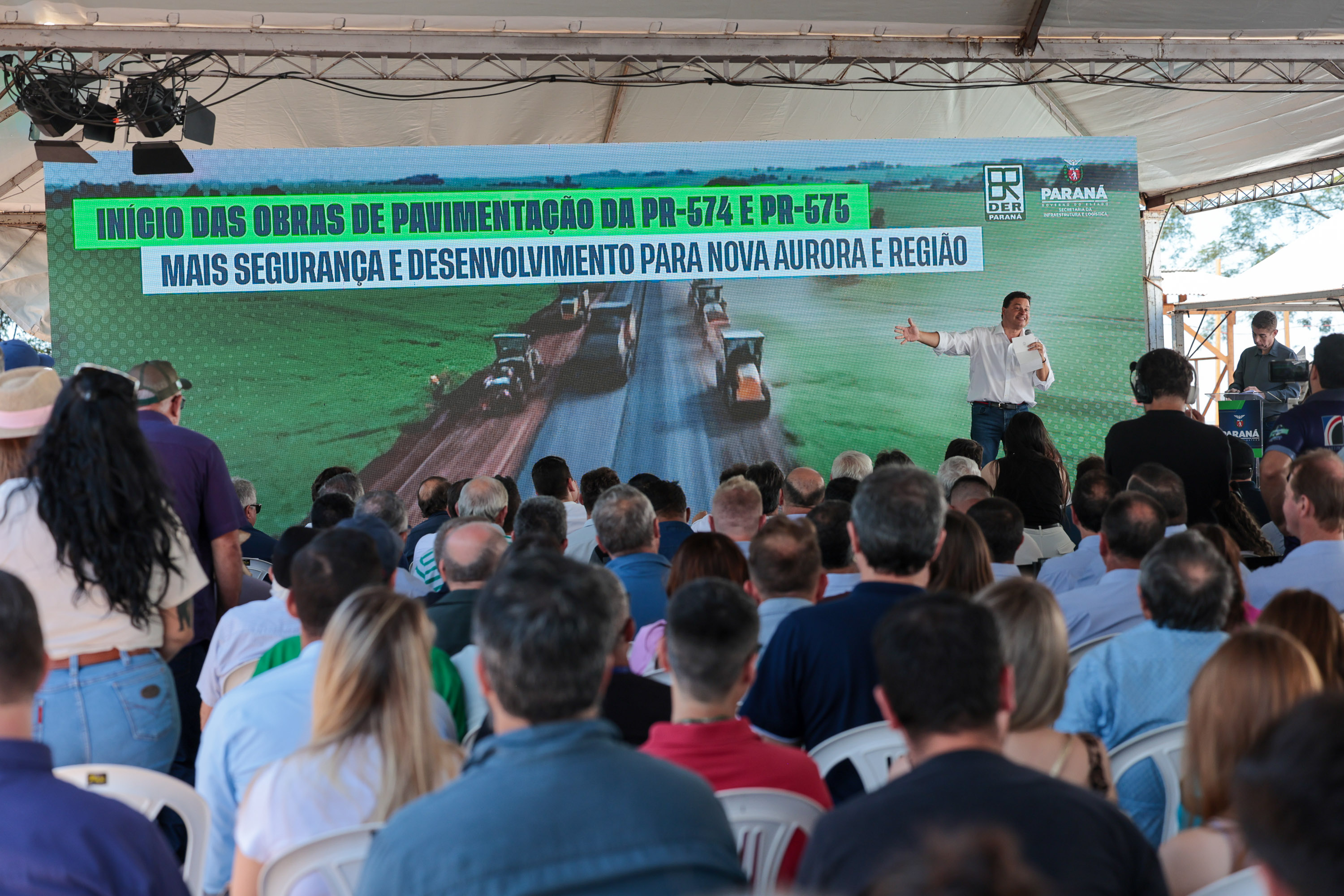 O Governo do Estado autorizou nesta quarta-feira (4) o início das obras de pavimentação das rodovias PR-574 e PR-575, no distrito de Palmitópolis, em Nova Aurora, na região Oeste. Com investimento de R$ 95,6 milhões, o governador Carlos Massa Ratinho Junior deu início à execução oficial dos trabalhos, que abrem um corredor estratégico para a mobilidade regional, o escoamento da produção agroindustrial e o desenvolvimento dos municípios.