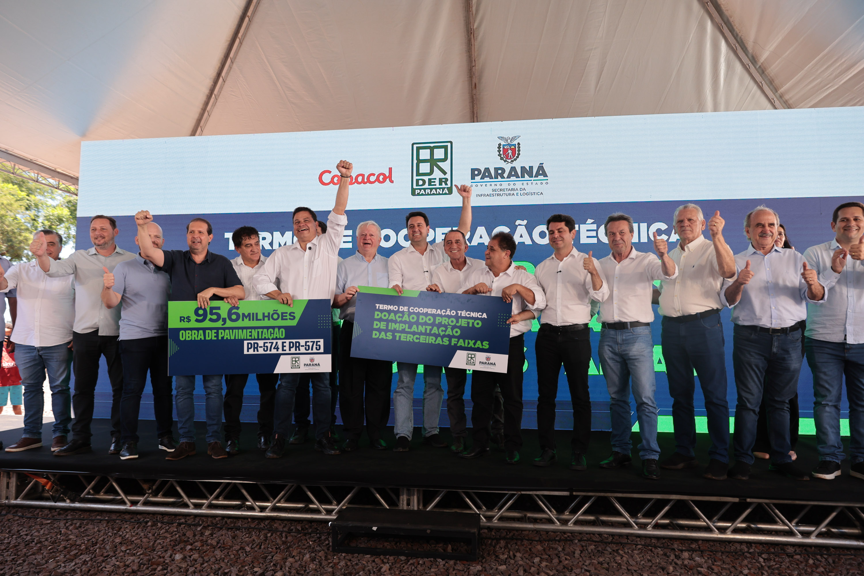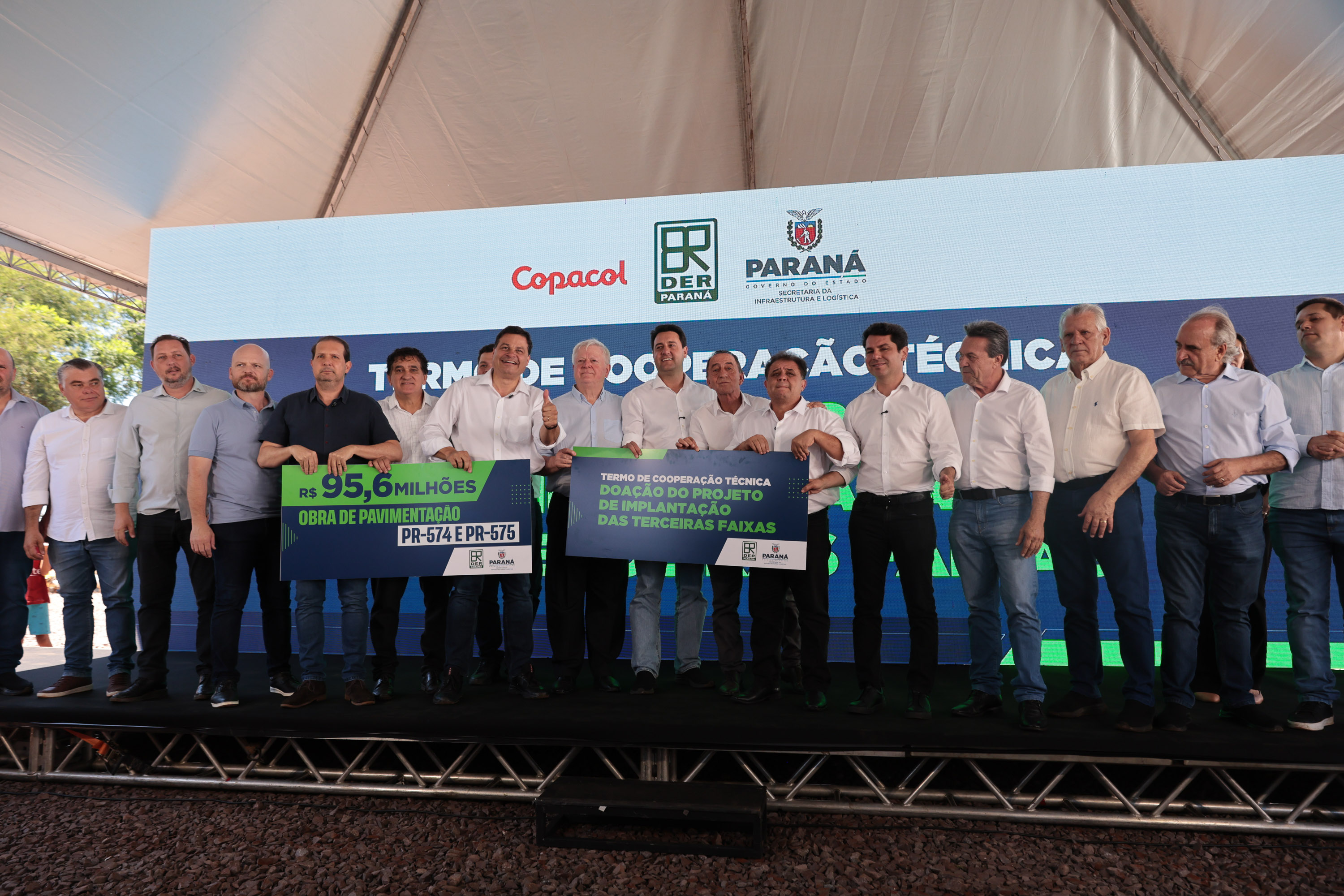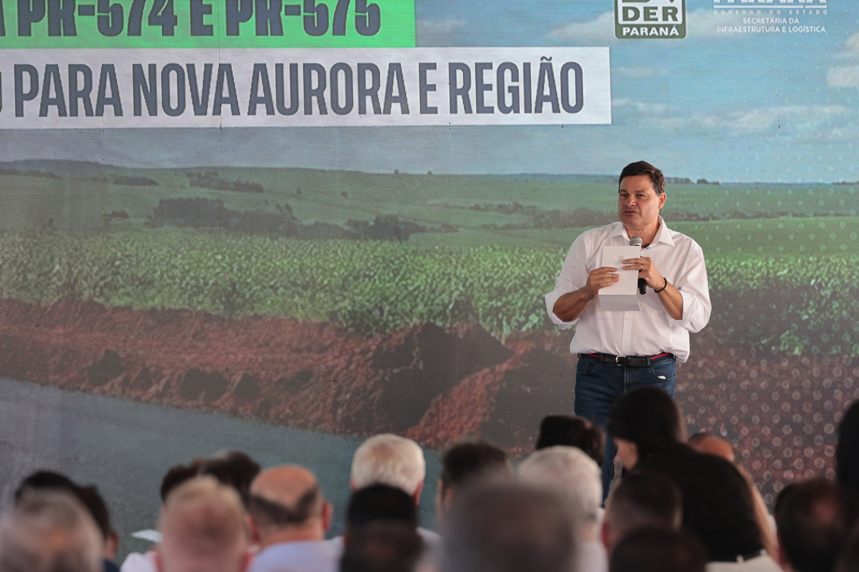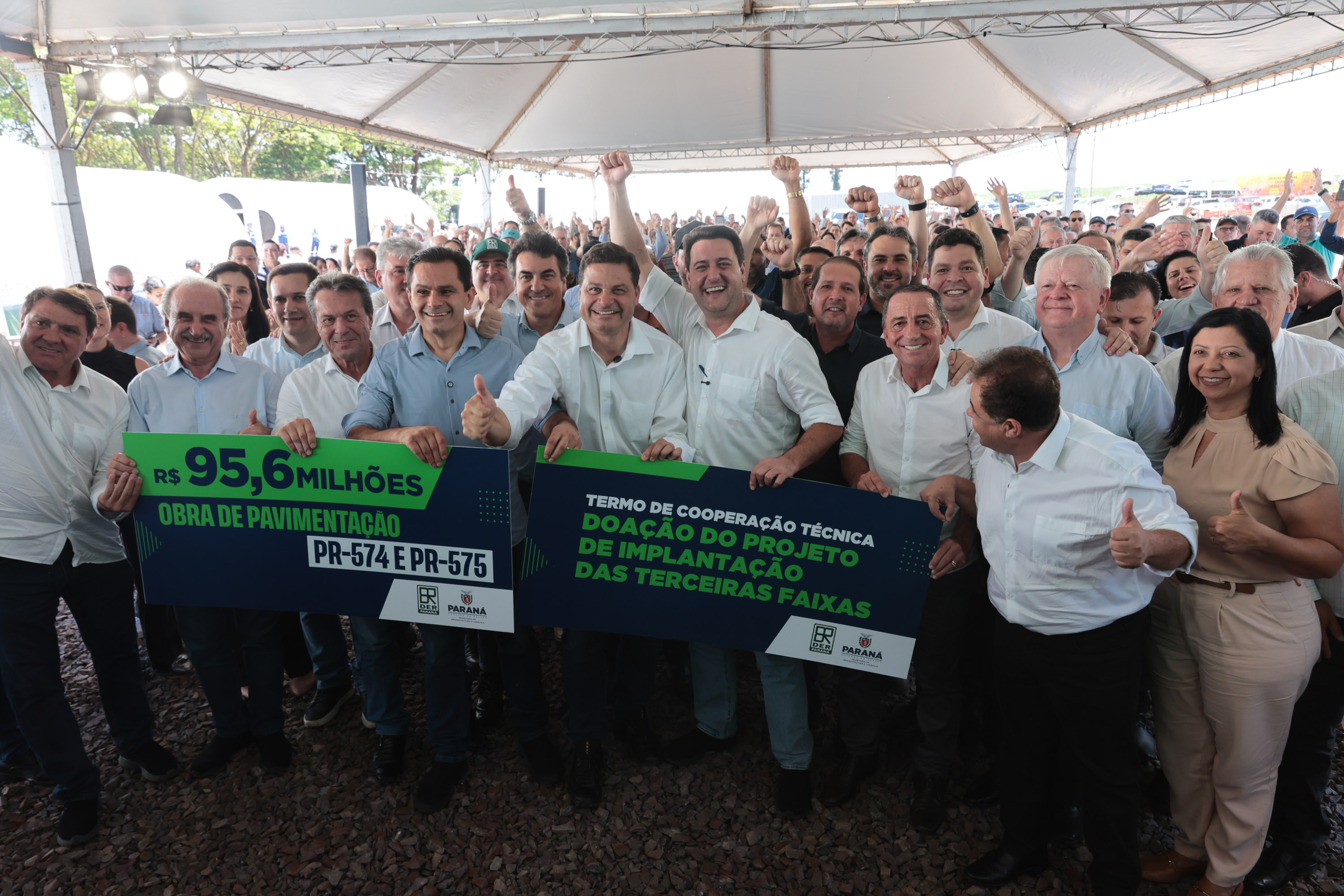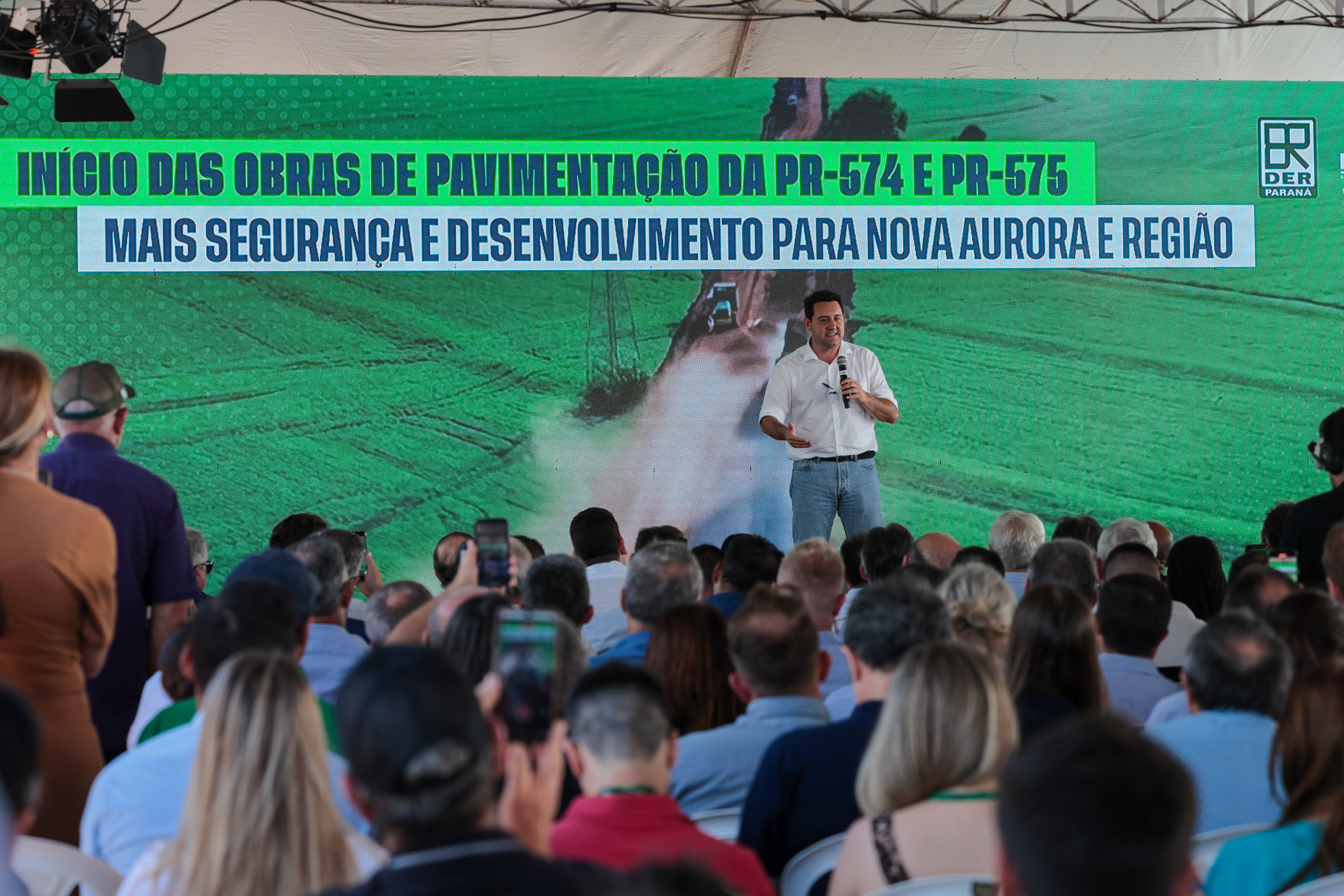 O Governo do Estado autorizou nesta quarta-feira (4) o início das obras de pavimentação das rodovias PR-574 e PR-575, no distrito de Palmitópolis, em Nova Aurora, na região Oeste. Com investimento de R$ 95,6 milhões, o governador Carlos Massa Ratinho Junior deu início à execução oficial dos trabalhos, que abrem um corredor estratégico para a mobilidade regional, o escoamento da produção agroindustrial e o desenvolvimento dos municípios.