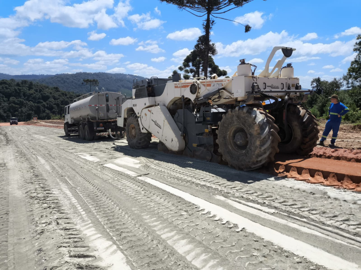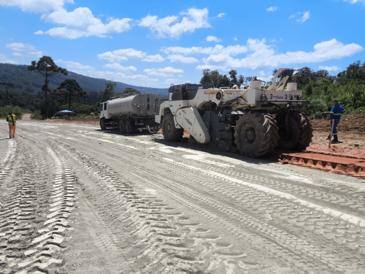 A pavimentação da PR-092 em Doutor Ulysses, na Região Metropolitana de Curitiba, iniciou a execução de solo-cimento no trecho, material que vai compor a sub-base e a base do novo pavimento asfáltico. A obra atingiu a marca de 27,2% na medição mais recente, de março, marcando um investimento de R$ 15,4 milhões até o momento.