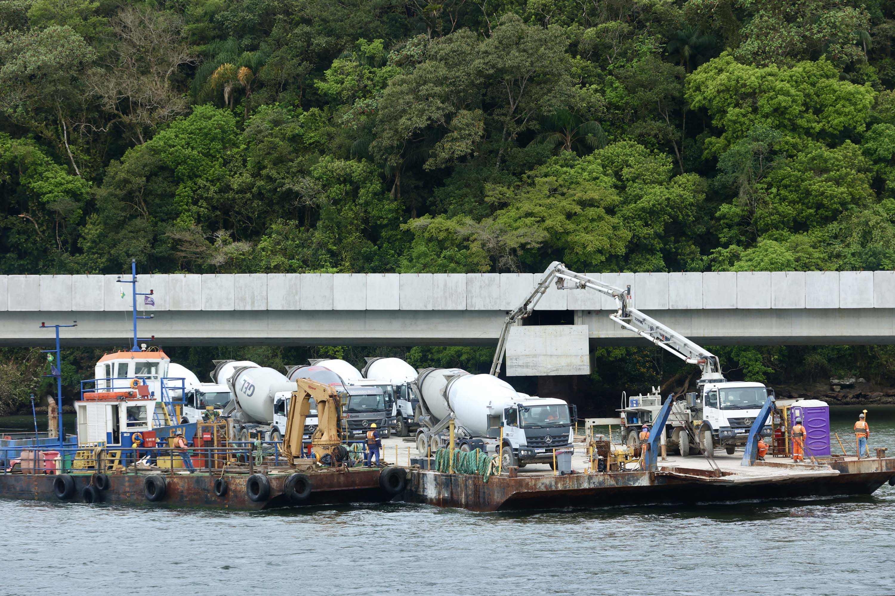 No trecho pré-moldado, foram concluídas 62 estacas (24 no estaiado e 38 no pré-moldado). Além disso, foram finalizadas 18 vigas travessas e lançadas 128 vigas longarinas, de um total de 142 já fabricadas. No trecho pré-moldado, as pré-lajes continuam a ser instaladas e 14 dos 23 vãos do tabuleiro já foram executados.