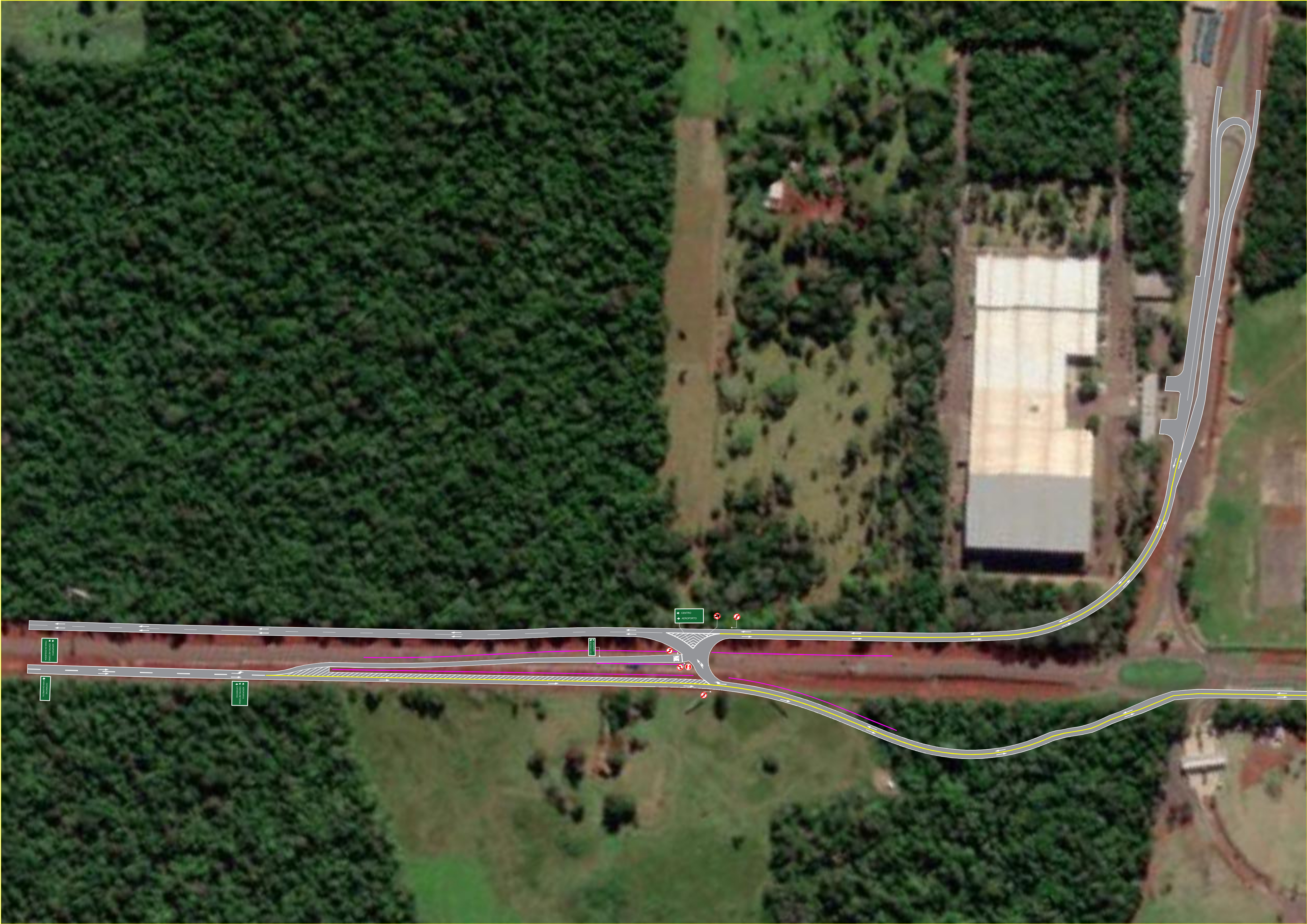 Os usuários provenientes do sentido Cataratas – Centro, assim como os usuários sentido Cataratas – Aeroporto, deverão acessar a marginal esquerda, próximo a antiga entrada do aeroporto, percorrendo aproximadamente 460 m, onde então deverão acessar a marginal direita existente, prosseguindo normalmente pelo trajeto atual.